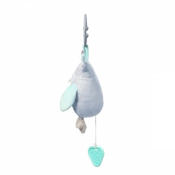 Jucarie muzicala, BabyOno, Happy Moon, De agatat, Cu prindere universala, Cu inel pentru dentitie, Pentru patut/carucior, 20 x 24 x 7 cm, Gri