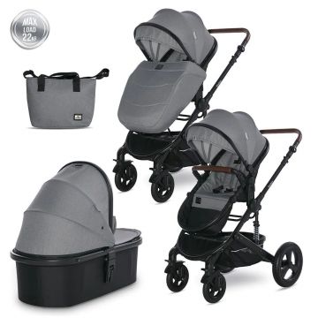 Carucior set 2 in 1, Lorelli Aspen, transformabil, set adaptori cos auto inclus, pana la 22 kg, Grey