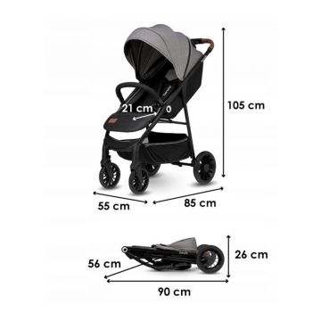 Carucior sport Annet plus de la nastere cu accesorii 0- 22 kg gri Lionelo