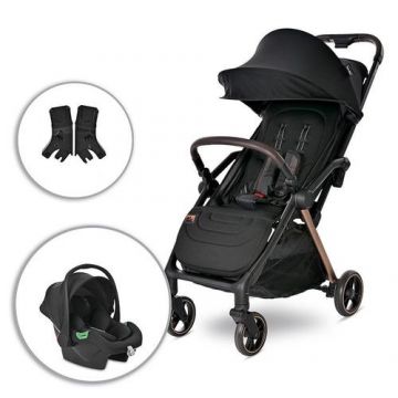 Set Carucior 2 in 1 Lorelli Loret, 0 luni - 4 ani, pana la 22 kg, pliere cu o singura mana, spatar reglabil in 4 pozitii, suport picioare reglabil, suspensii, cosulet auto I-size 0 - 15 luni, 40 - 87 cm, Negru