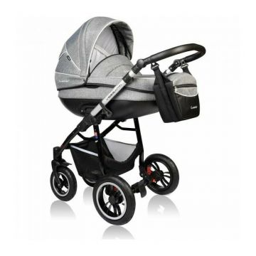 Carucior pentru copii, Adamex, 2 in 1 Lanti PS79, Pliabil, landou cu salteluta, copertina reglabila, roti frontale pivotante, cu dubla suspensie si husa de ploaie inclusa, Linen EcoLeather, Grey Heather